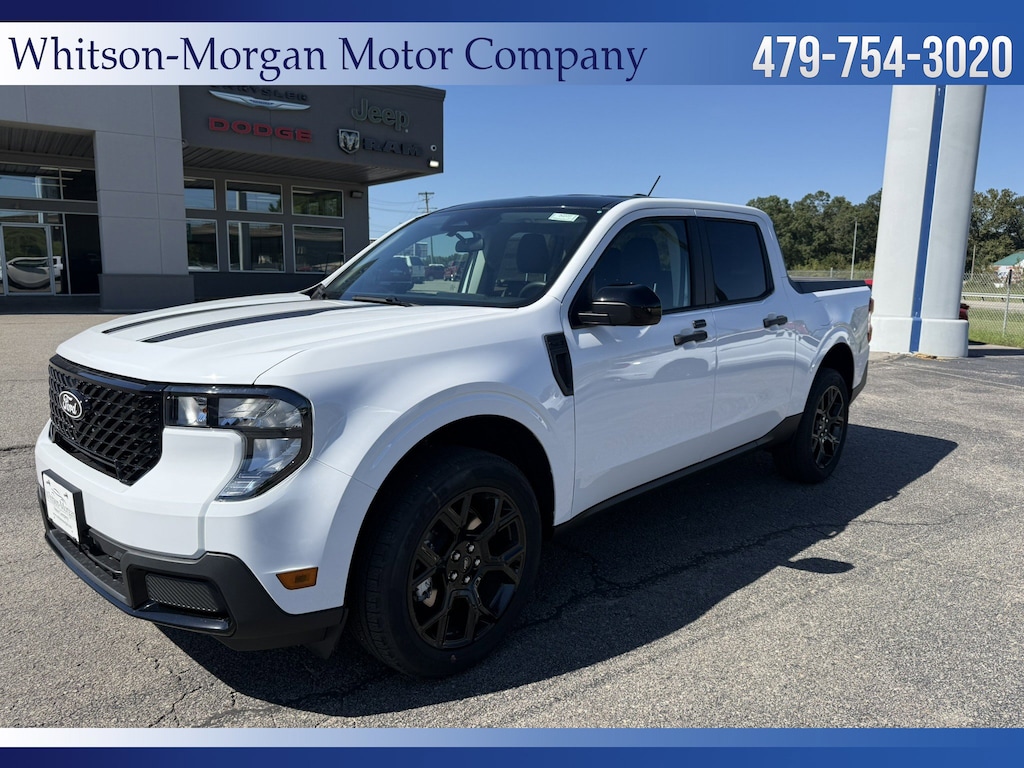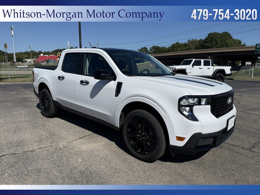 Maverick XLT, 4D Crew Cab, 2.5L I-4 Hybrid, AWD, Oxford White, Cloth, Auto High Beams, Black Appearance Package, Black Grille, Black Interior Accents, Black Painted Mirrors, BLIS w/Cross-Traffic Alert, Cross Traffic Brake Assist, Equipment Group 301A, Evasive Steering Assist, Ford Co-Pilot360 1.0, Front & Back Black Edition Ford Logo, Intersection Assist, Lane-Keeping System, Power Glass Manual-Folding Mirrors, Pre-Collision Assist w/Automatic Emergency Braking, Rear Parking Sensors, Rear-View Camera, Unique Cloth Front Bucket Seats w/Black Appearance, Wheels: 19" Black Painted Aluminum. 2025 Ford Maverick Oxford White XLT 2.5L I-4 Hybrid 40/34 City/Highway MPG CVT AWD