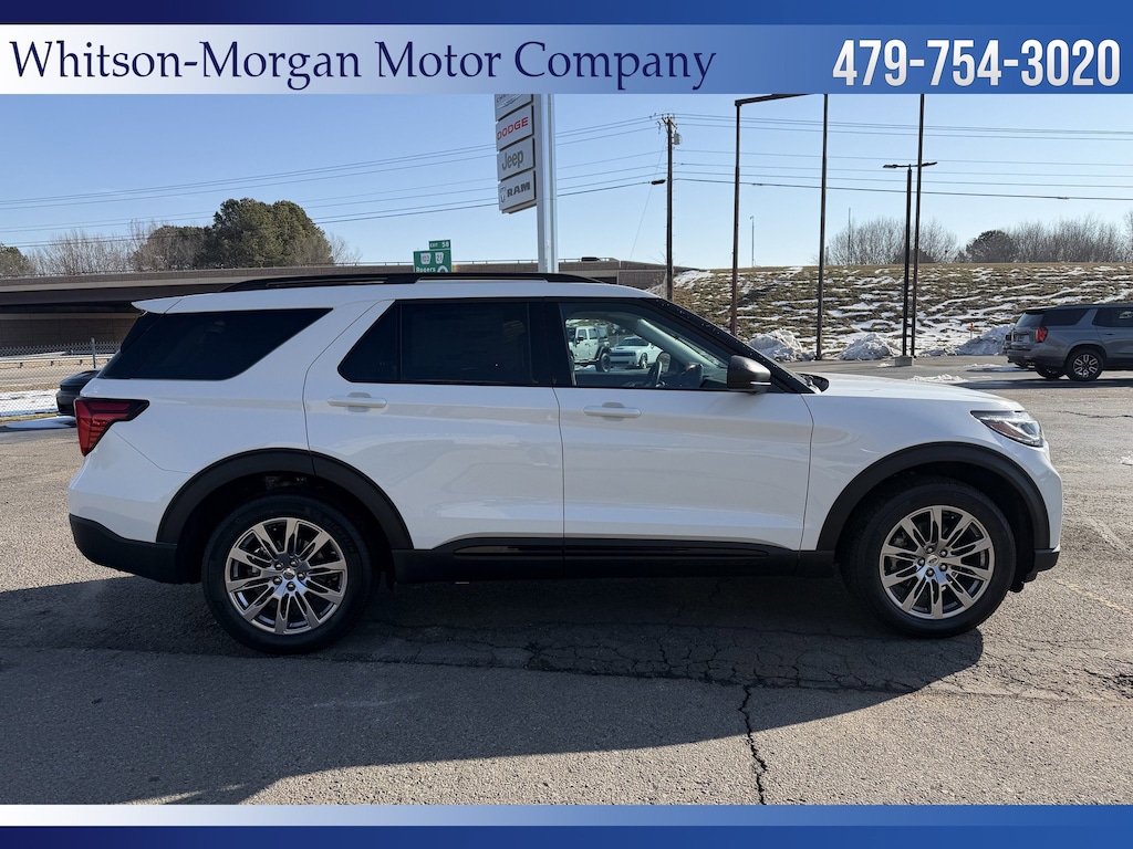 Recent Arrival! ** Alloy Wheels / Premium Wheels, ** Apple CarPlay/Android Auto, ** Backup Camera, ** Blind Spot Monitor, ** Bluetooth, Hands Free, ** Cross Traffic Alert, ** Heated Seats, ** Heated Steering Wheel, ** Keyless Entry, ** Leather Seats, ** Remote Start, ** Steering Wheel Controls, ** Tow Hitch / Trailer Hitch, Explorer Active, 4D Sport Utility, 10-Speed Automatic, 4WD, White Metallic, Ultra Dark Space Gray Premium Synthetic, Active Comfort Package, AM/FM Stereo, Equipment Group 200A Standard Package, Ford Connectivity Package (one-Time Purchase - 7 Years), Front Fascia, Heated ActiveX Seating Material Captain's Chairs, Heated Steering Wheel, Panoramic Fixed Glass Roof with Power Shade, Remote Start System, Second Row Hvac Controls, Unique Cloth Heated Captain's Chairs, Wheels: 20" Luster Nickel-Painted Aluminum. 2026 Ford Explorer White Metallic Active 2.3L EcoBoost I-4 20/27 City/Highway MPG 10-Speed Automatic 4WD Price includes: $3500 - Retail Customer Cash. Exp. 04/30/2026